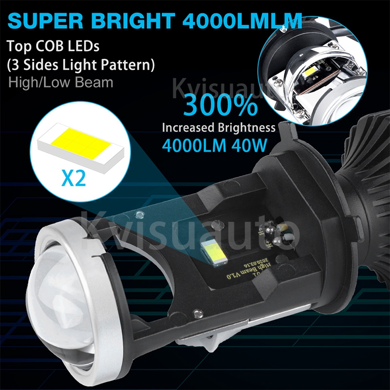CQL KVISUAUTO 12V 24V T1 H4 LED Headlights car H4 Mini Projector Lens 6000K
